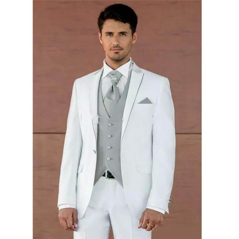 White Wedding Tuxedos For Groom 3 Piece Custom Formal Man Suits Wedding Tuxedos White
