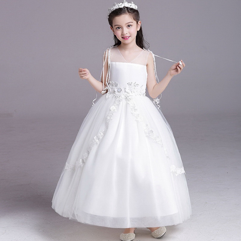 White Wedding Dress Children Kids Party Dress Baby Girls Princess Wedding White Dresses For Little Girls