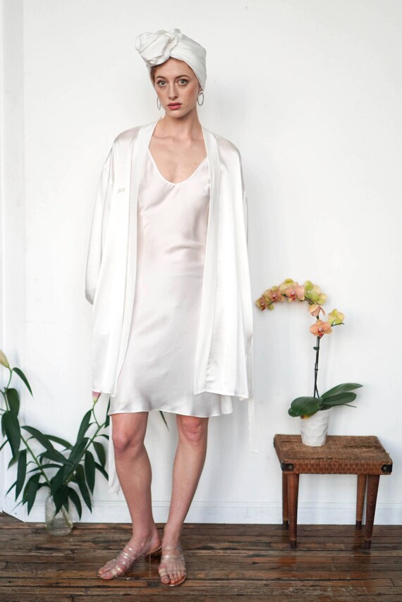 Silk Kimono Jacket White Silk Robe Wedding Robe Etsy Wedding White Silk Slip Dress