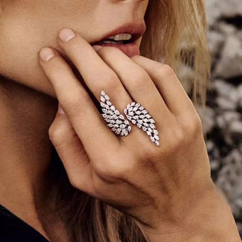 Godki Angel Wing Feather Design Long Full Finger Luxury Cubic Wedding Wrap Ring