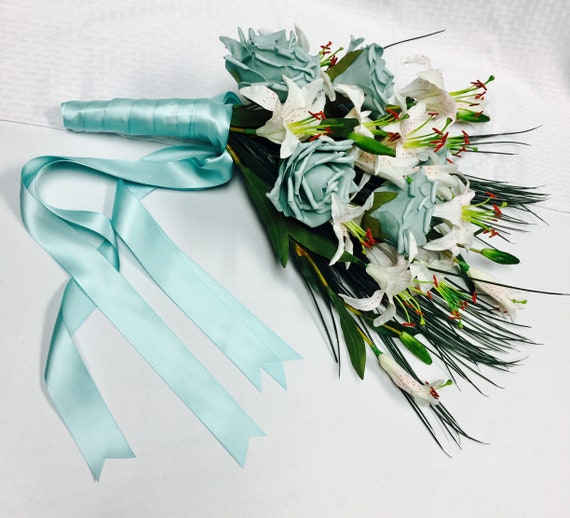 New Arrival 1pc X Pretty White Rose Wedding Flowers Bridal White And Blue Rose Wedding Bouquet