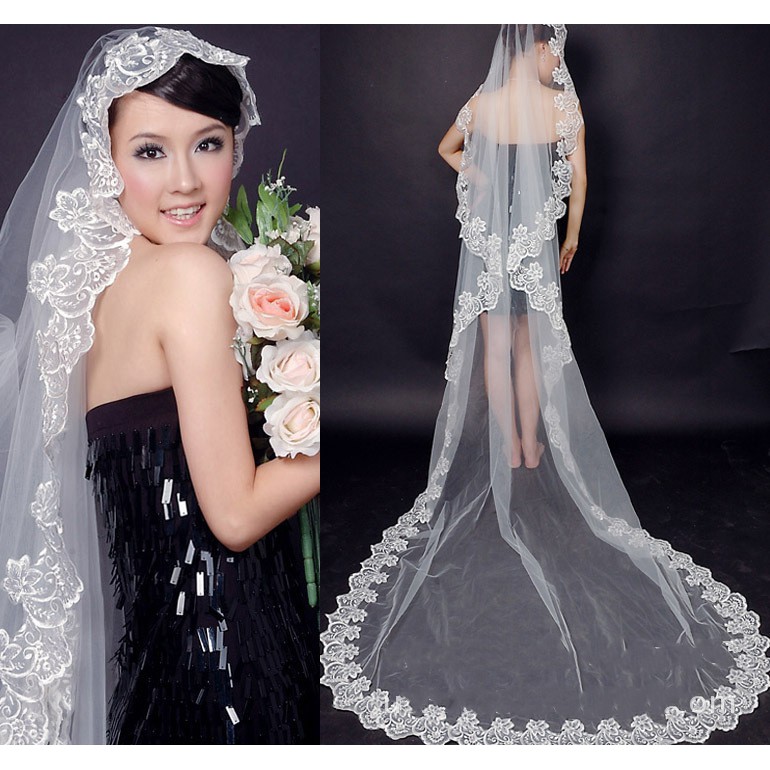 Large Lace Wedding Veil White Red Champagne 3 Color Wedding Veil Shopee Singapore White And Champagne Wedding