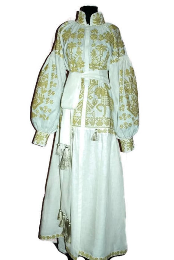 Embroidered Boho Wedding Dress Plus Size With Gold Ukrainian Etsy White And Gold Wedding Dress Plus Size