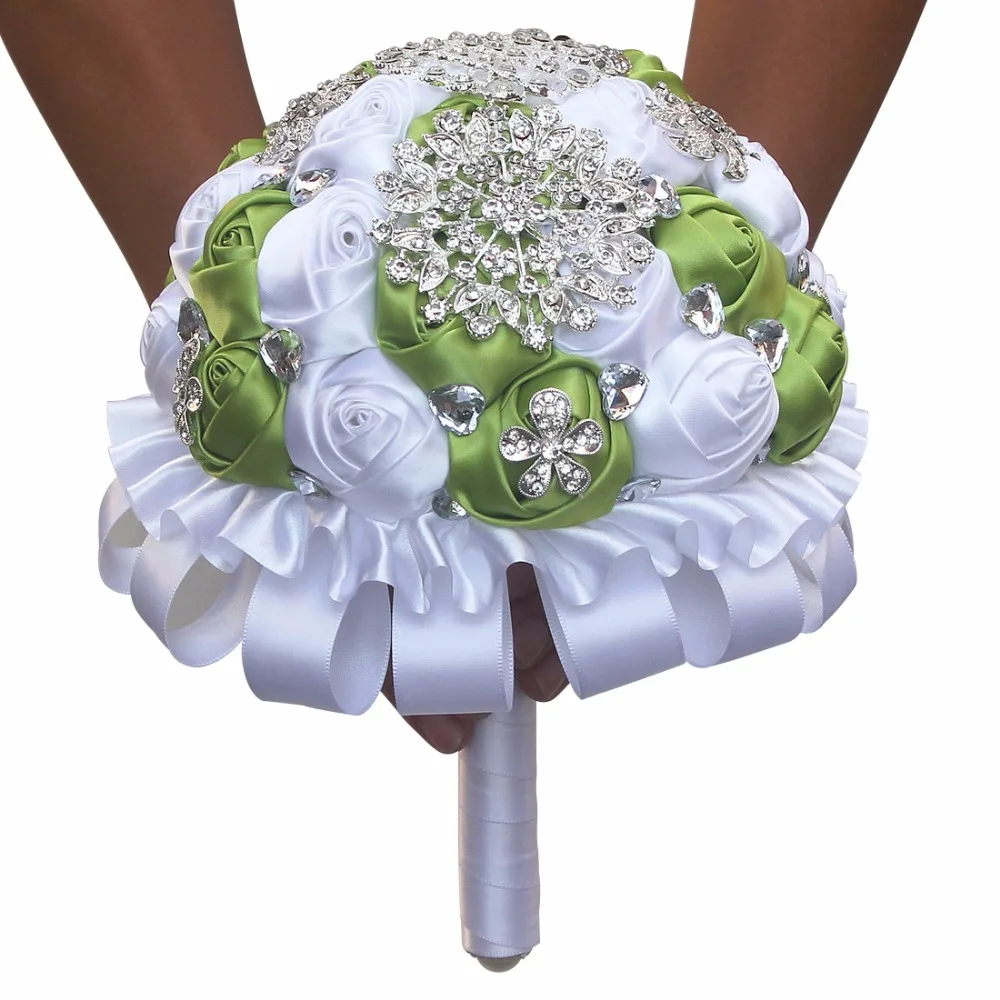 Haoxie Hand Made White Green Satin Rose Stunning Jewelry Brooch White And Green Wedding Flowers
