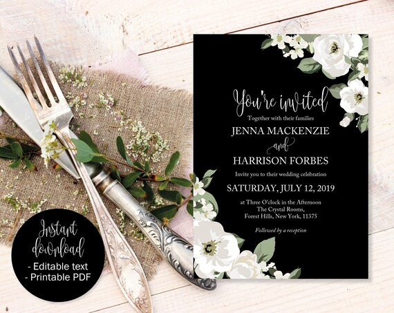 Greenery Botanical Foliage Wedding Invitation Green White White And Green Wedding Invitations
