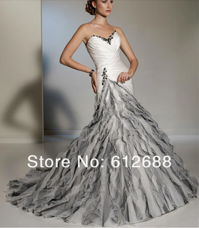 A Line White And Grey Color Sweetheart Off Shoulder Ruffles Black White And Grey Wedding Dress