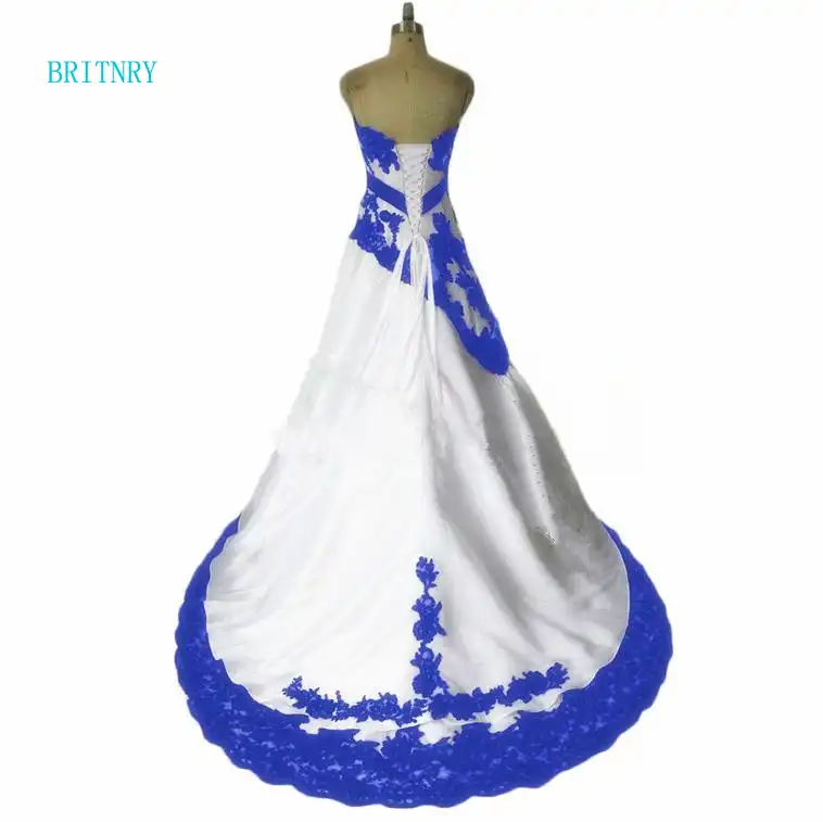 Britnry New Arrivals Strapless Simple Wedding Dress A Line White White And Royal Blue Wedding Dresses