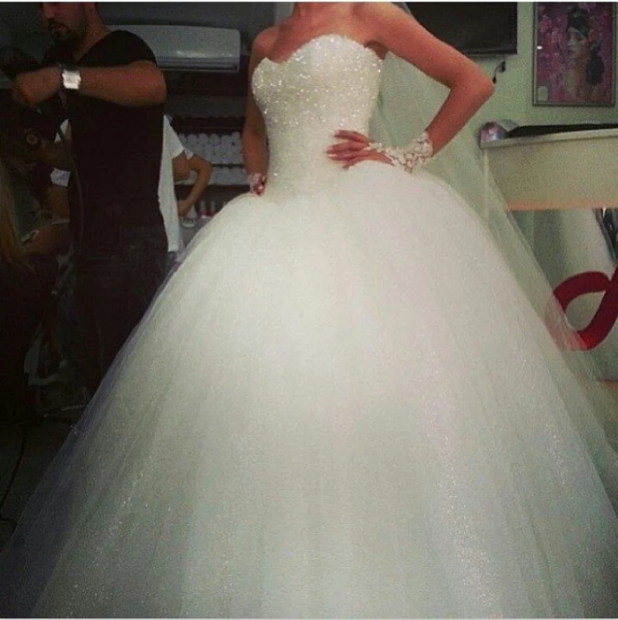 H1350 White Silvery Beaded Tulle Princess Wedding Gowns White Cinderella Ball Gown Wedding Dress