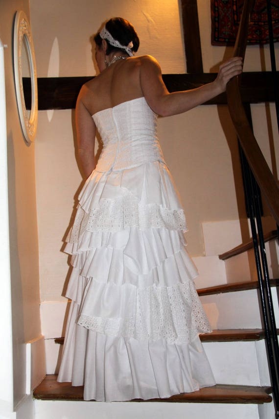 Cream Off White Cotton Lace Viscose Bridal Gown Boho Wedding White Cotton Wedding Dresses