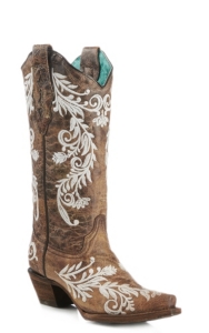 Corral Women S Brown And White Glow In The Dark Embroidery Snip White Cowgirl Wedding Boots