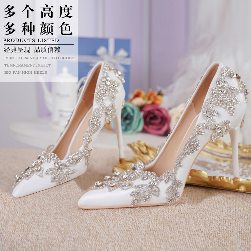 White Crystal Shoes Wedding Shoes Bride Toast Shoes Birthday Gift White Crystal Wedding Shoes