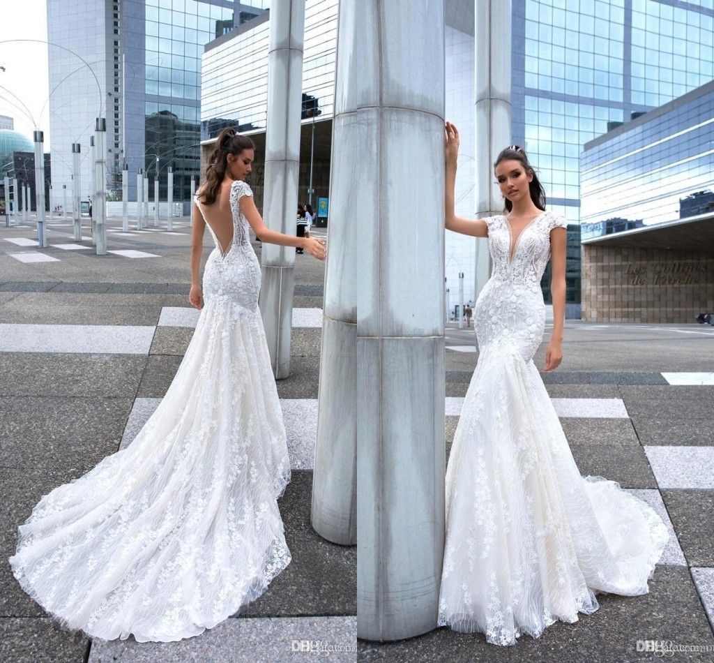 Romantic Elegant White Full Lace Mermaid Wedding Dresses 2019 White Elegant Wedding Dresses