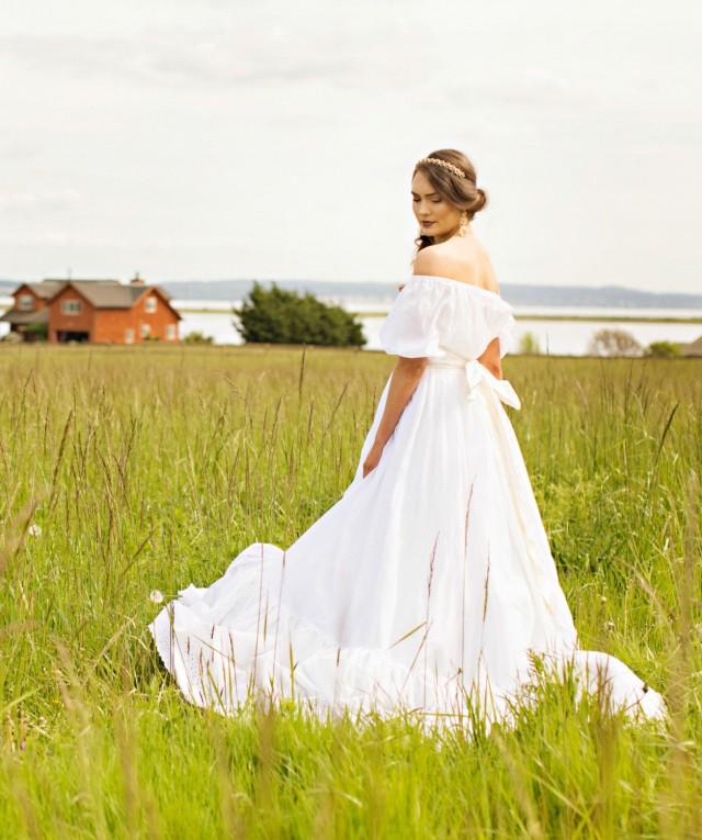 Cotton Boho Wedding Dress Off Shoulder Two Piece Skirt Top Katrina Eyelet Ruffle Long Full Skirt 2524361 Weddbook White Eyelet Wedding Dress