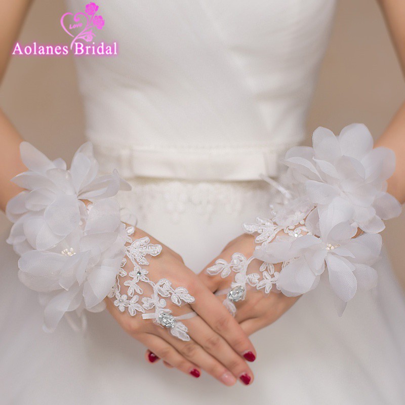 Compare In Stock Lace Appliques Beads Bridal Gloves Ivory White White Fingerless Wedding Gloves