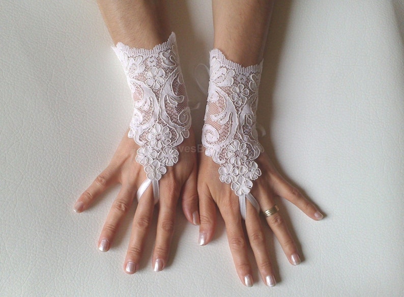 White Ivory Lace Bridal Gloves Fingerless Wedding Accessory Bridal White Fingerless Wedding Gloves