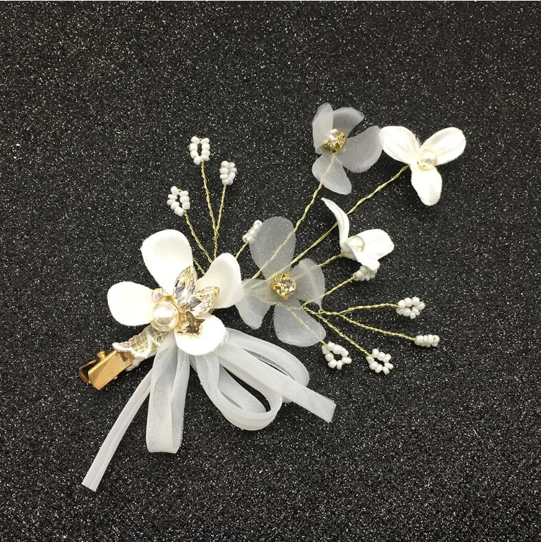 Qn Women Bridal White Flower Rhinestone Pearl Hair Clip Wedding White Flower Hair Clip Wedding
