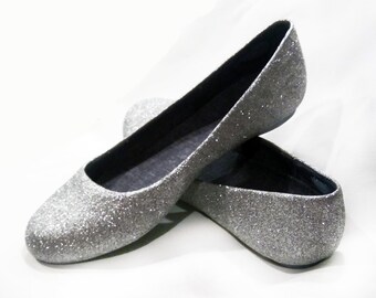 Women S Sparkly Silver Glitter Ballet Flats Bride Wedding Shoes White Glitter Flats Wedding