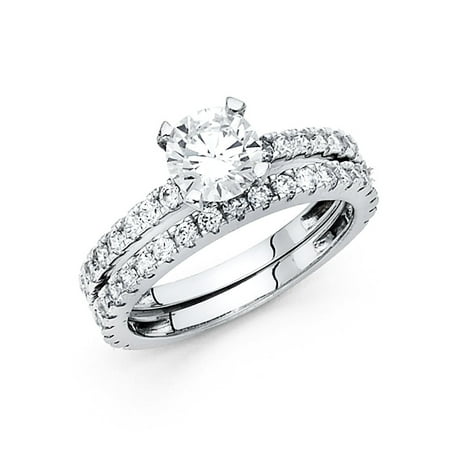 Cubic Zirconia Rings 2 0 Ct Round 14k Wedding Set R7553w White Gold Cubic Zirconia Wedding Sets