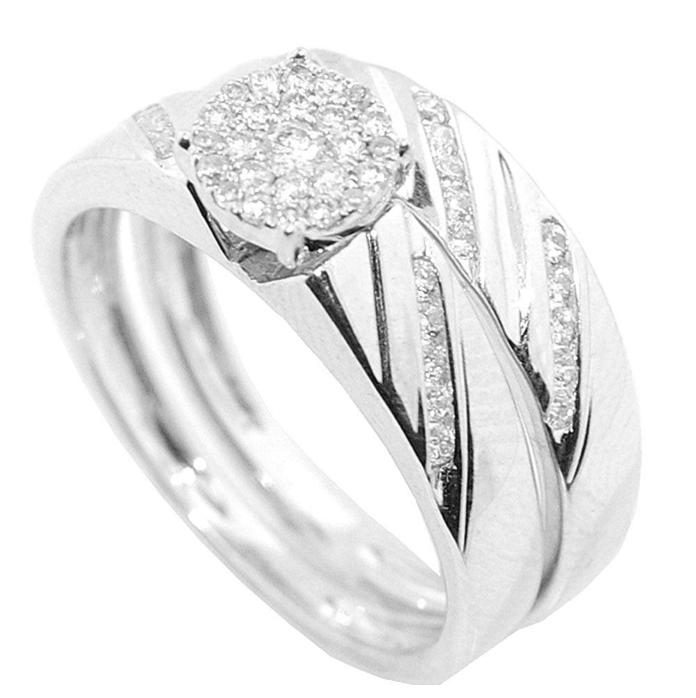 10kt White Gold His Hers Round Diamond Cluster Matching Bridal White Gold Wedding Band Sets
