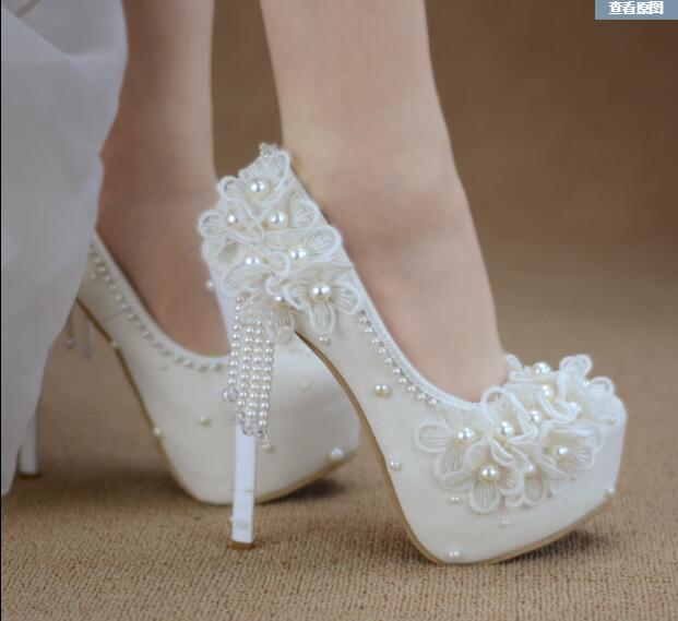 White High Heels Wedding Shoes Woman Lace Flower Bridal Shoes High Heels Women Shoes Pumps Heels 4 5 8 Cm Big Size Women S Pumps Aliexpress White Heels For Wedding