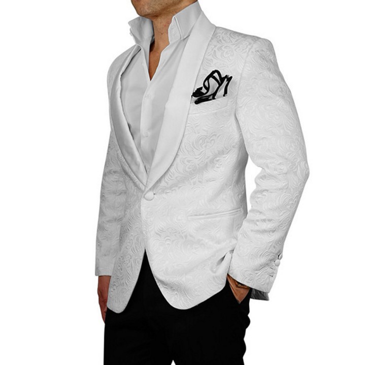 12 Grooms With Wedding Style That S On Point White Jacket Black Pants Wedding