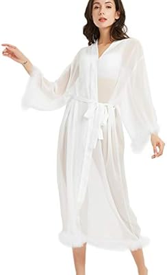 New Dance Women S Kimono Wedding Bridal Robes Sexy Feather Perspective Dressing Gown With Belt Wht L Buy Online At Best Price In Uae Amazon Ae White Kimono Wedding Dress