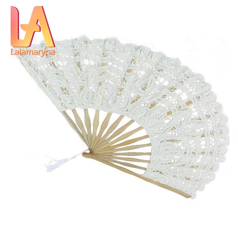 Wedding Lace Silk Folding Handheld Fan Design Craft Handmade White Lace Fan Wedding
