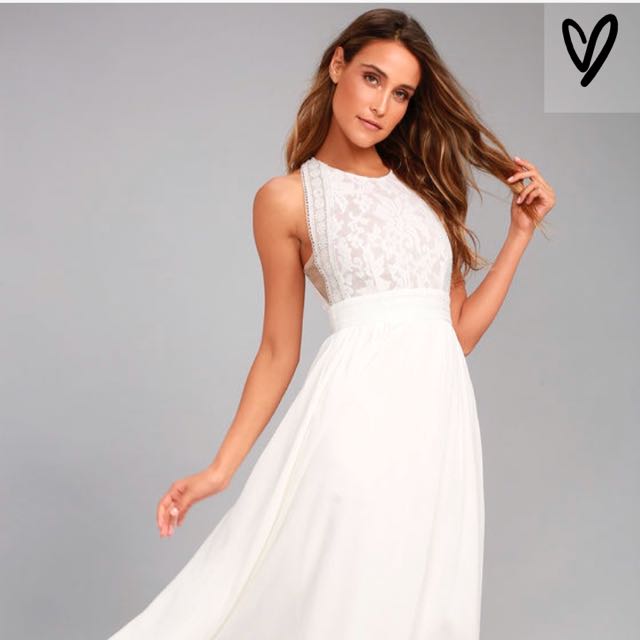 New Fashion White Lace Maxi Dress Women Formal Wedding Evening White Lace Maxi Wedding Dress