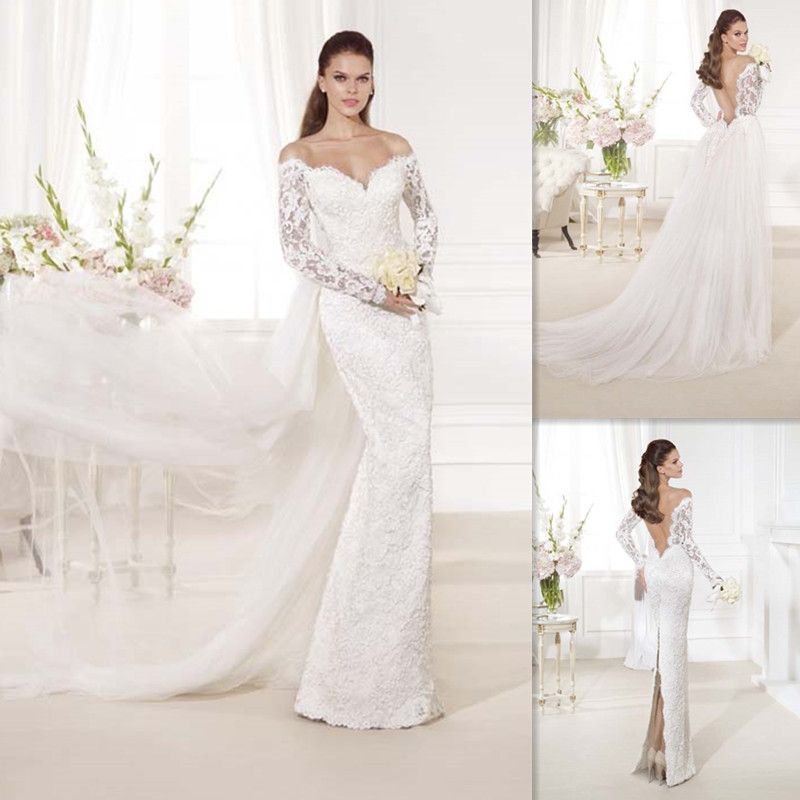Mermaid Off The Shoulder Open Back White Lace Wedding Dress With White Lace Off The Shoulder Wedding Dress