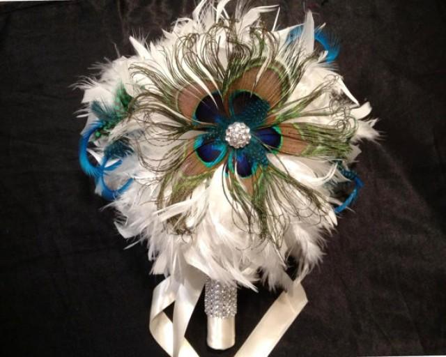 Vintage Bling Ivory Or White Peacock Feather Bridal Bouquet White Peacock Feather Wedding Dress