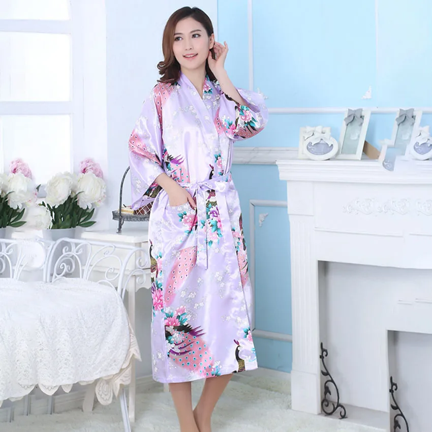 White Silk Satin Wedding Dress For Women Comfortable Floral Peacock Full Sleeve Nightgown Sexy Kimono Yukata Tunic Japan Style Asia Pacific Islands Clothing Aliexpress White Peacock Wedding Dress