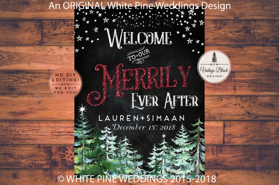 Christmas Wedding Welcome Sign Rustic Pine Tree Winter Etsy White Pines Wedding