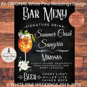 Wedding Bar Menu Signature Drink Sign With White Florals Etsy White Pines Wedding