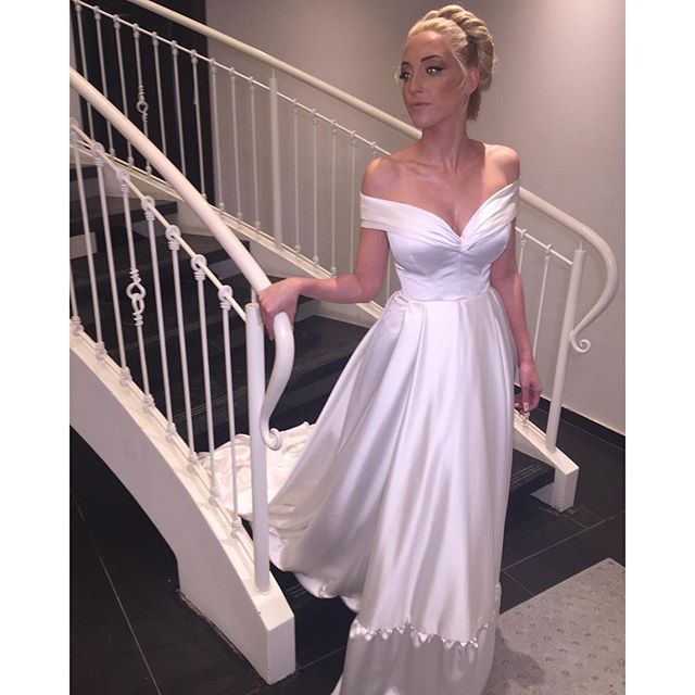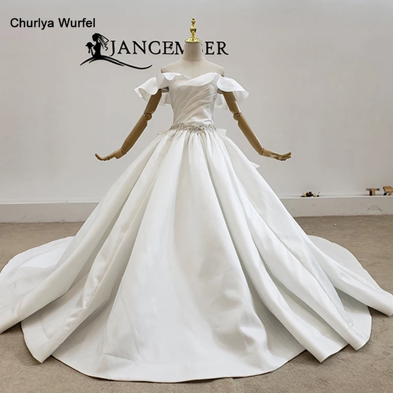 Simple White Pleated Off Shoulder Satin Wedding Formal Dress White Pleated Wedding Dress