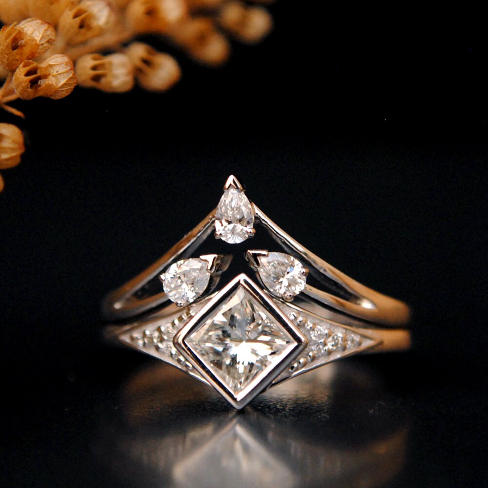 Princess Diamond Wedding Ring Set 14k White Gold Unique Etsy White Princess Diamond Wedding Dress