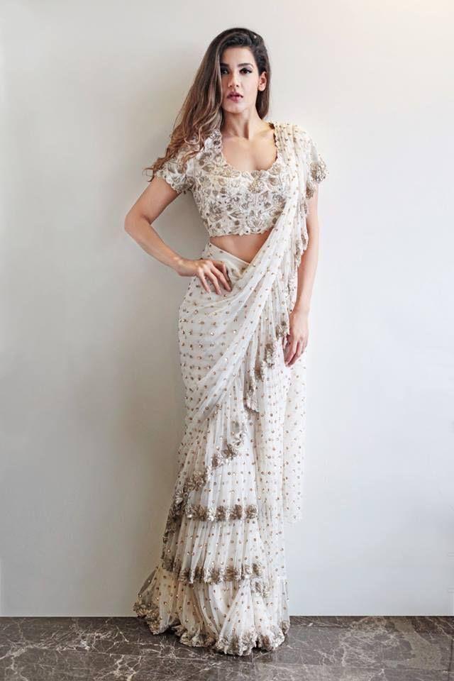 Indian Women Nylon Net White Saree Bridal Party Reception Ethnic White Saree Wedding Dress
