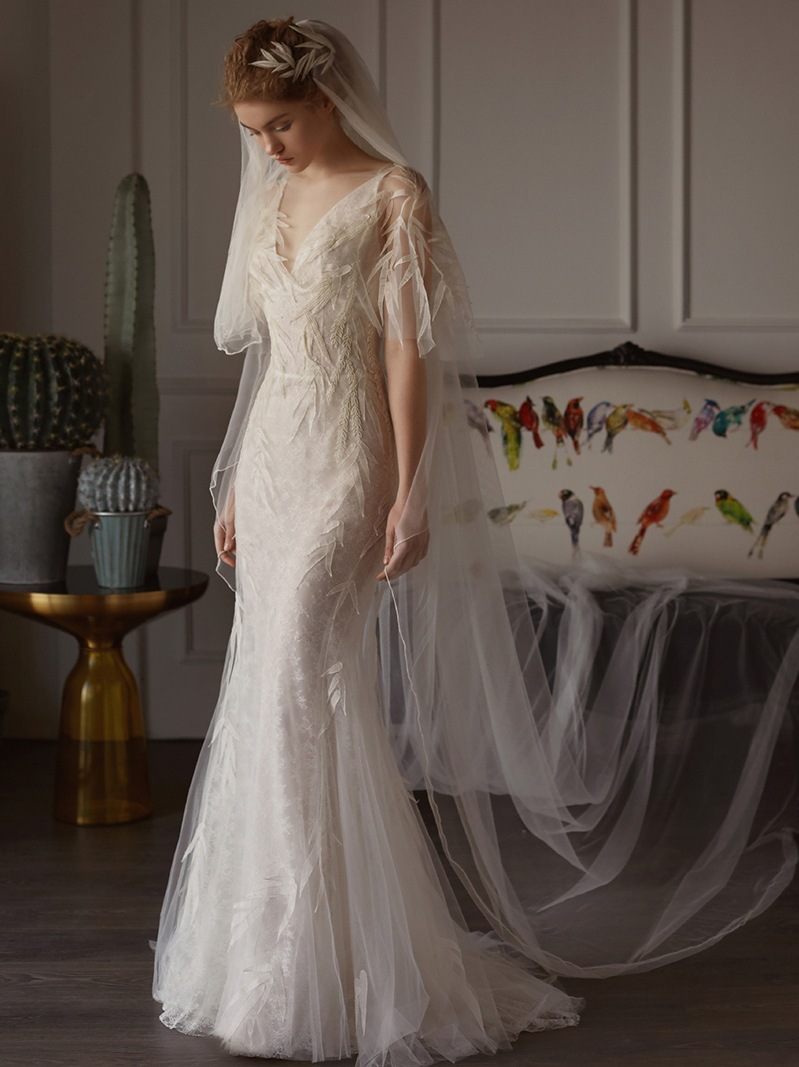 Axjfu Lace The Word Princess Lace Wedding Dress Sweet Bride Slim White Small Wedding Dresses