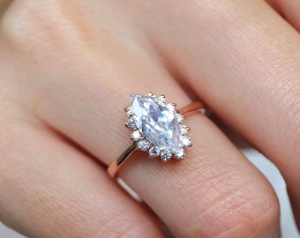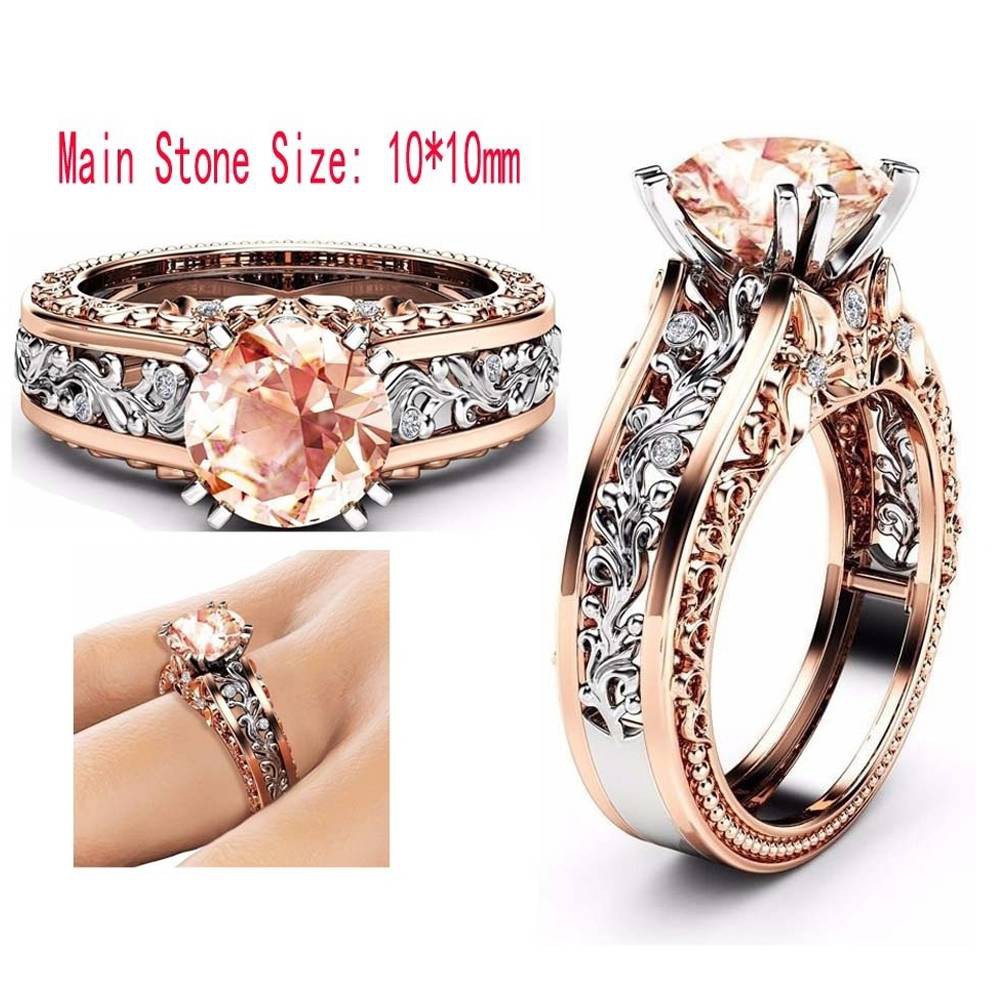 8mm Cushion Cut White Topaz Wedding Ring Gem Engagement Ring Rose White Topaz Wedding Rings