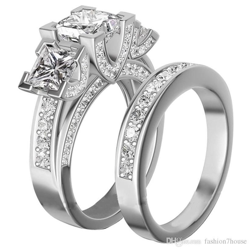 2020 Brand Gemstone Ring Finger Jewelry Three Stones White Topaz White Topaz Wedding Rings