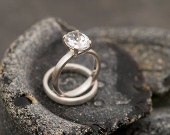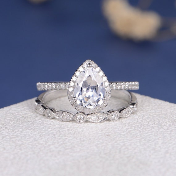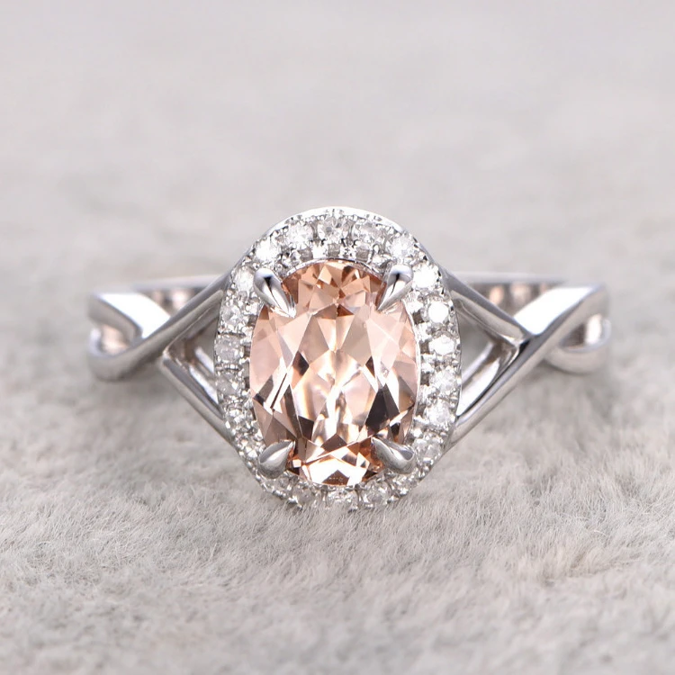 Ring For Women 1 3ct Oval Morganite Engagement Ring 14k White Gold White Topaz Wedding Sets