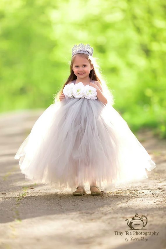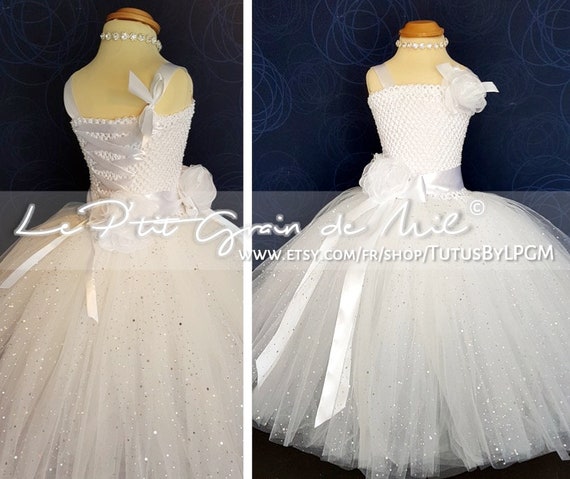 Long Princess Tutu Wedding Dress For Girls White Bridesmaid Etsy White Tutu Wedding Dress