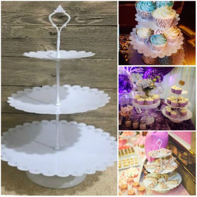 3 Tiers Cake Stand Metal White Wedding Cake Tool Shopee Malaysia White Wedding Cake Stand