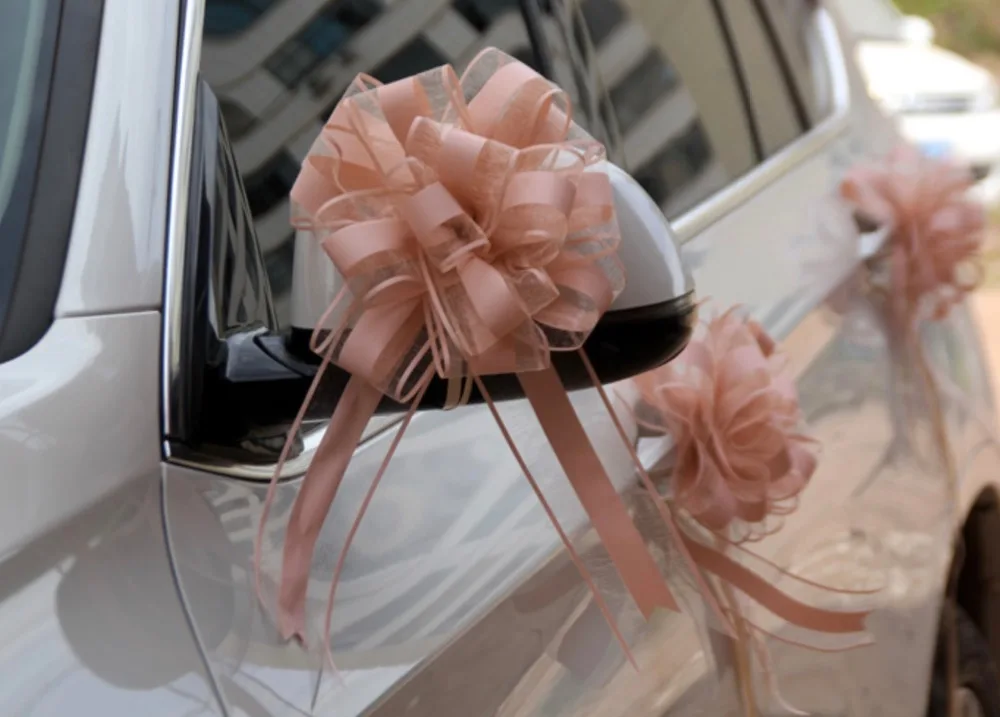 30pcs Solid Color White Gold Beautiful 65mm Large Pull Bow White Wedding Car Ribbon