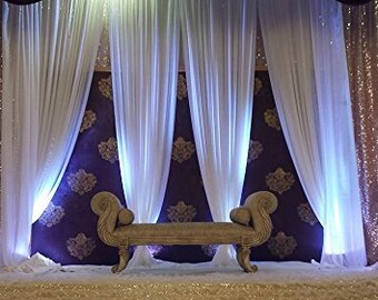 20ft 10ft Pure White Wedding Backdrop Curtain With Sequin Swag White Wedding Drapes