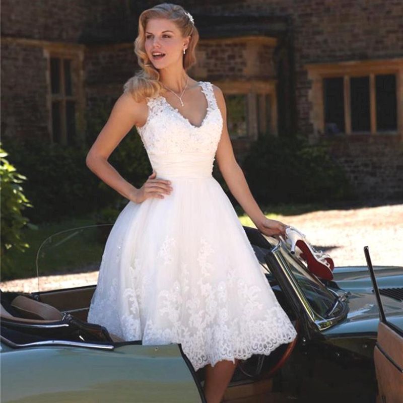 White Bohemian Short Wedding Dress V Neck Long Sleeves Modest White Wedding Dress Short