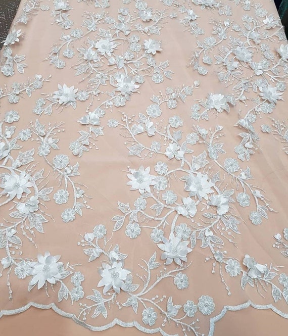 China Wholesale 3d Flower High Quality Elegant Lace Bridal White White Wedding Fabric