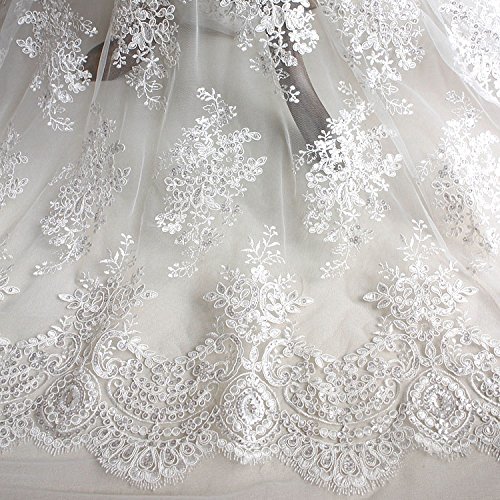Iriz Ivory White Botanical Brach Sequins Embroidery Floral Lace White Wedding Lace