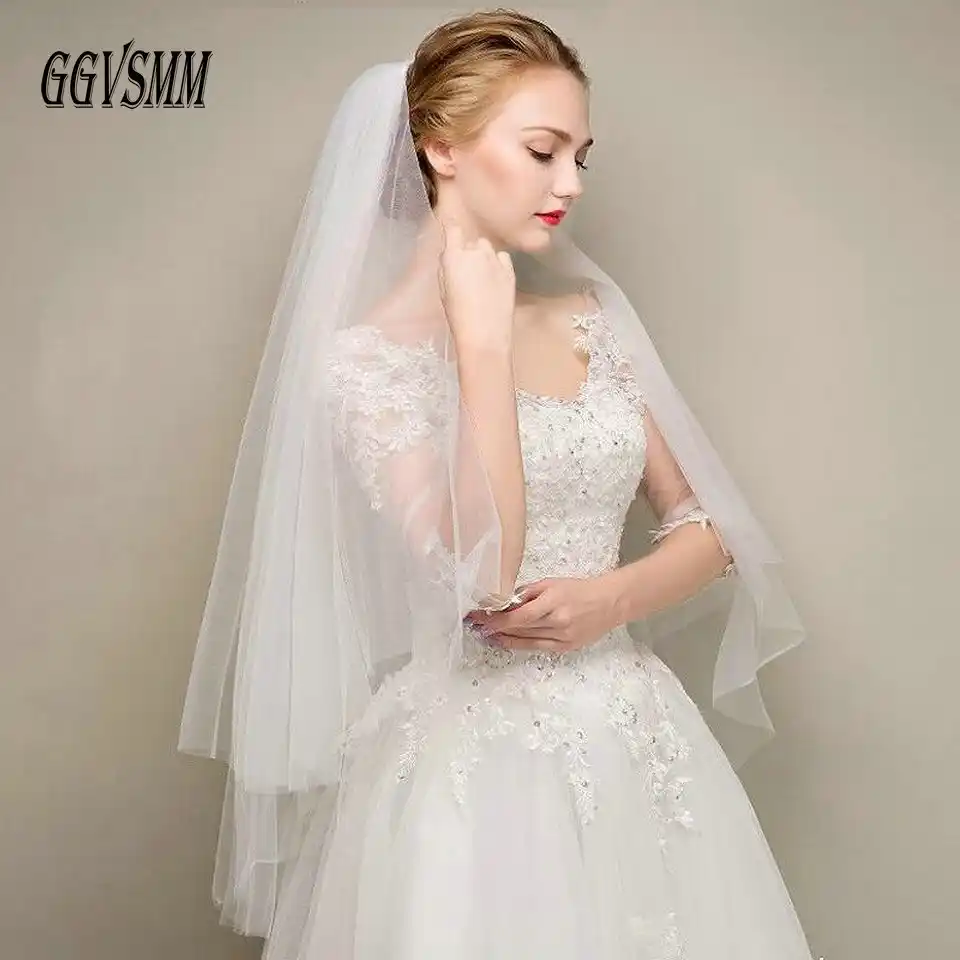Simple Two Layers Short Tulle White Wedding Veils Cheap 2020 Ivory White Wedding Veils