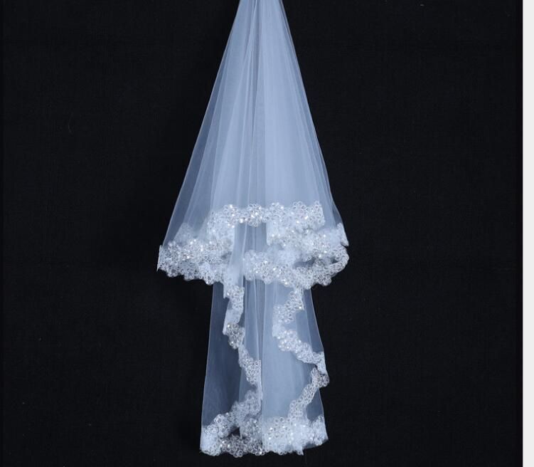 2019 Free Shipping Wedding Veils White Two Layer Lace Flowing Wholesale Wedding Accessories