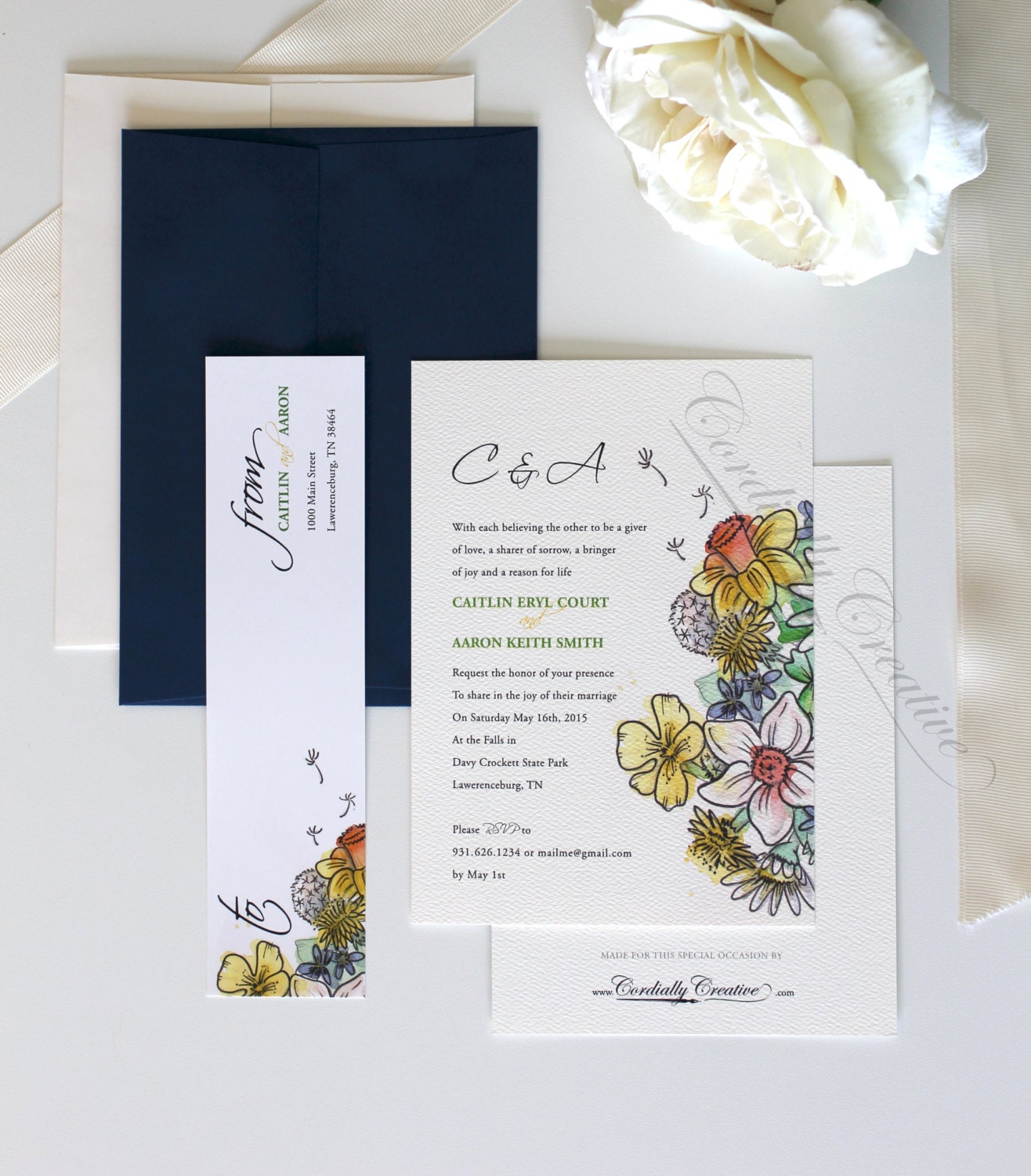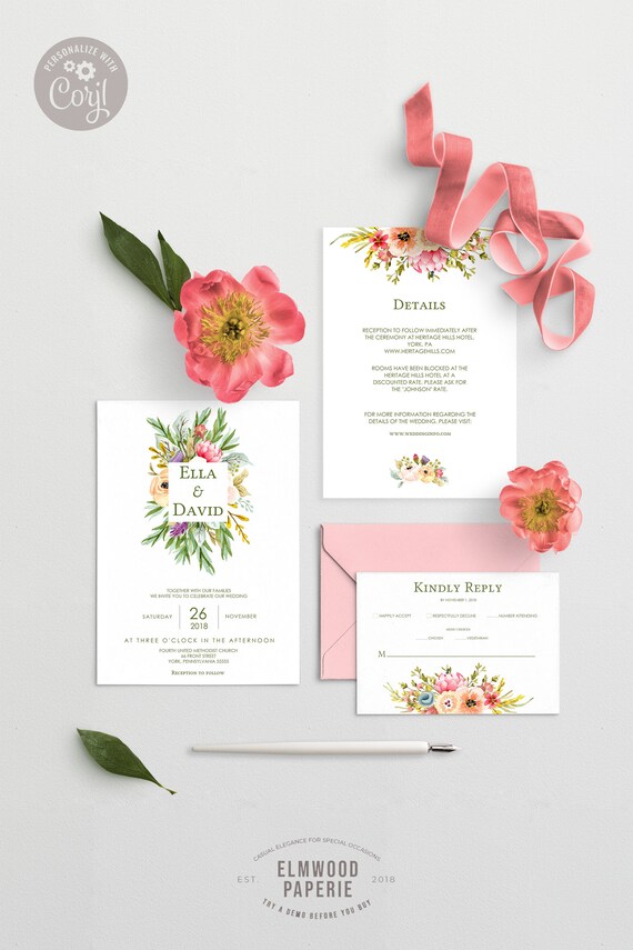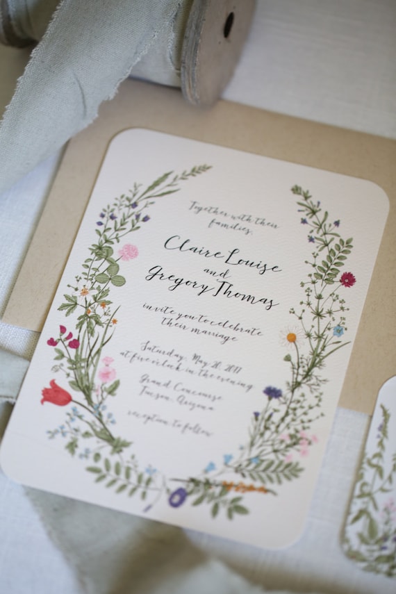 Wildflower Wedding Invitation Set Watercolor Floral Wedding Wildflower Wedding Invitations